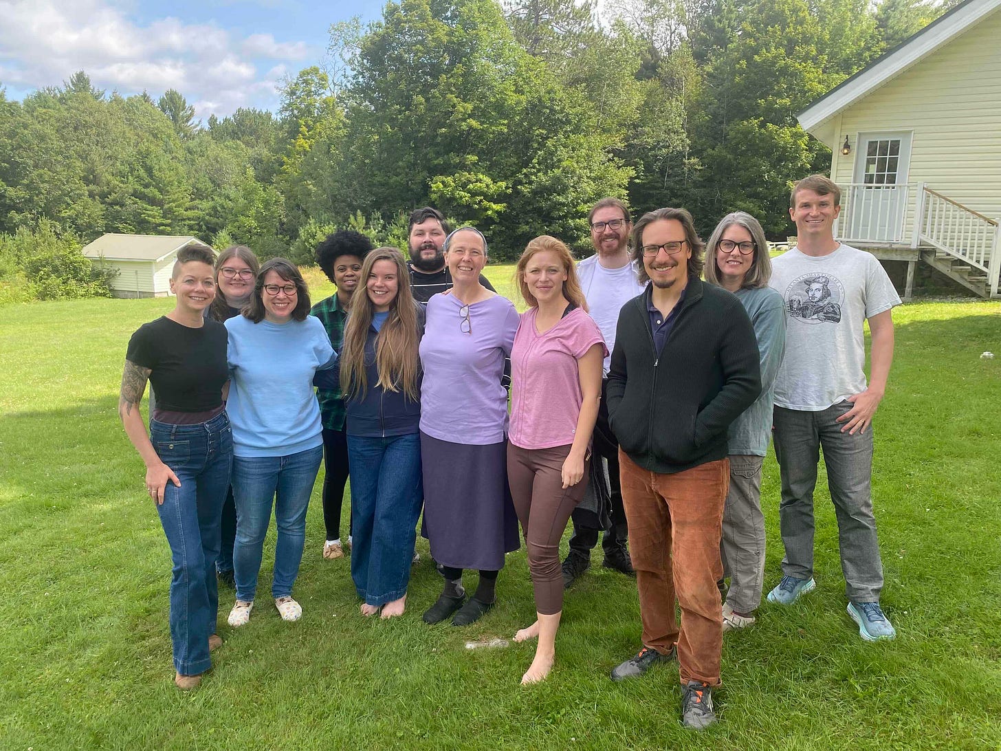 Our first cohort of 12 authors shows up in upstate New York for a writing retreat that kicks off our year-long workshop. We’re still getting our sea legs under us, but we’re doing something right: this cohort goes on to meet on their own every week for a writing group and every year for their own in-person retreat. A huge tribute is due to Suzie, Dn. Nicholas’s business coach at the time, who organized and cooked for and generally championed the Workshop.